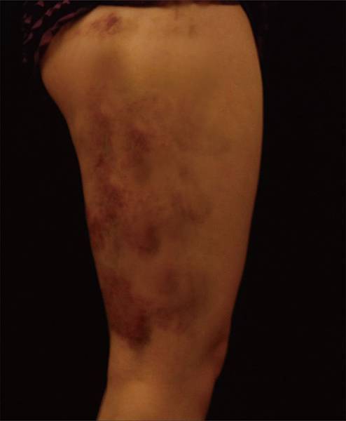 瘀青範圍相當大,非常疼痛,大部分動過傳統抽脂手術的患者都聲稱術後像被車輾過一樣。