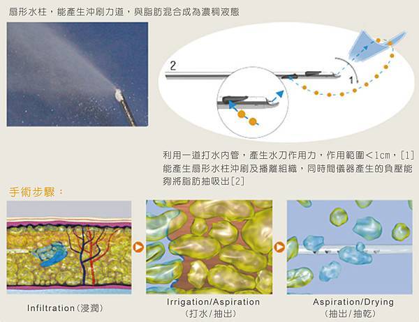 水刀雕脂是利用水的壓力沖刷脂肪組織,可降低對組織、神經及血管的傷害,減輕術後的疼痛及瘀青