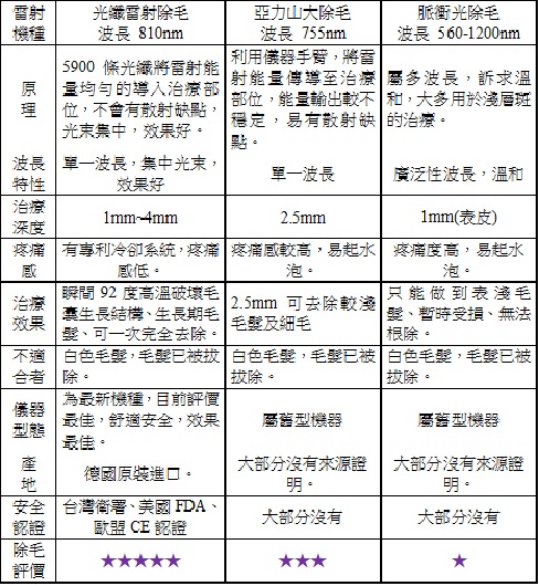 適合除毛的部位有手、腳、腋毛、胸毛、鬍鬚、一字眉、比基尼邊緣毛髮。